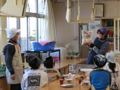 大変お世話になった、お米屋さんも家庭科室に来てくださり。この一年間を振り返りまながら食することができました。