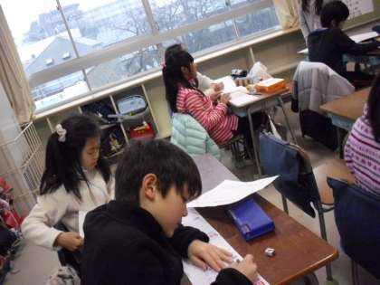 朝の会の前・・・配布物・・・自主的にドリルに挑戦している子など・・・ちょっとした時間の使い方が上手です。もうすぐ高学年・・・・準備万端です。
