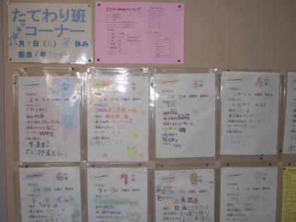 画面左は、本校は、異年齢活動の取り組みを大切にしています。子どもたちが「縦割り活動」について分かりやすいように“掲示物コーナー”を設置しています。