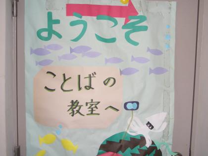 本校には、通級学級「ことばの教室」があります。通級してくる子どもたちが、リラックスして穏やかに学習できるような案内表示もあります。画面右をご覧ください。