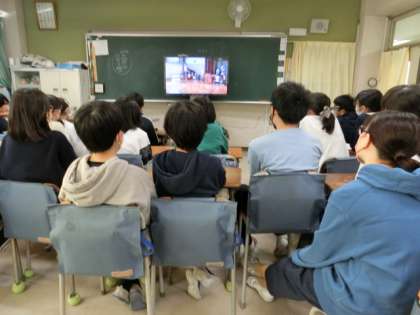 各学級で、各学年からの6年生へのお礼のメッセージビデオ。心のこもったビデオに感謝です。