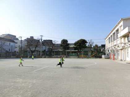 朝の校庭では、今日のマラソンタイムに向けて運動委員の子どもたちが準備を行っています。実際に走って、気持ちの良い汗を流しました。