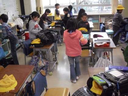 縦割り遊びが終わって・・・帰りの準備・・・早くできるようになっています。