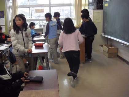縦割り遊びが終わり・・・教室で配布物を・・・先生に相談を・・・
