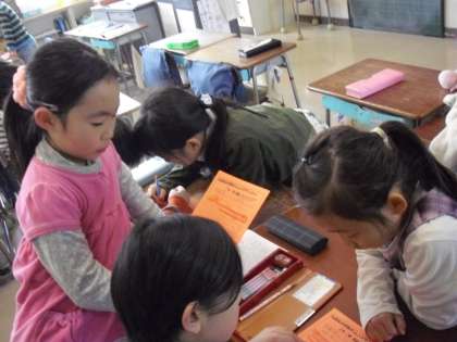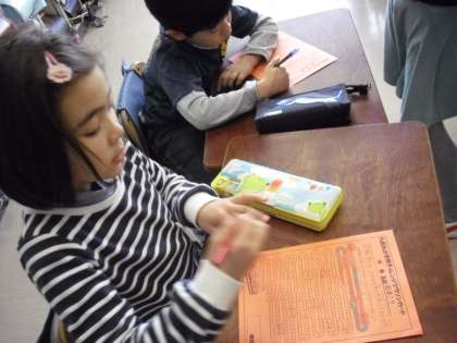 全校マラソンの記録を“山名の手線マラソンカード”に記入・・・