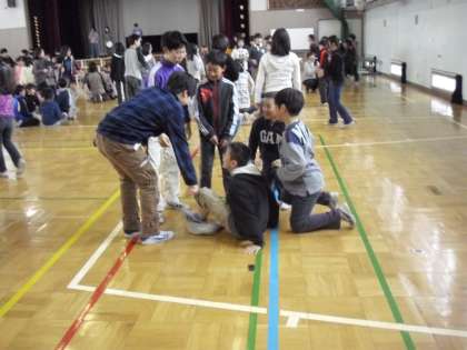 今朝は、体育館で“児童集会:猛獣狩りに行こうよ”をしました。1年生が学級閉鎖で、寂しいさはありましたが・・・・