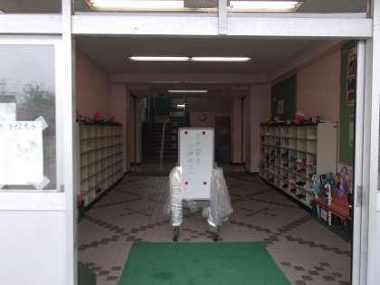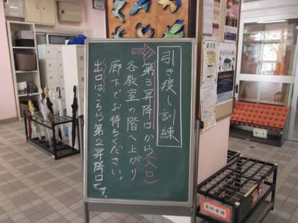 すぐーるで、引き取り訓練の通知を受けましたら、正門から第2昇降口→校庭→第3昇降口から校舎内にお入りください。