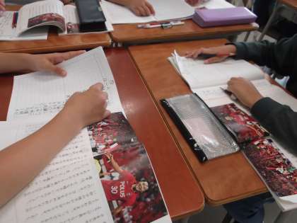 国語科の授業では、班で話し合いながら授業を進めていきました。