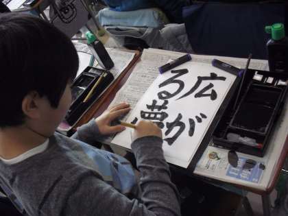 “習字:広がる夢”・・・お手本をしっかり見て書いていました。みんな上手です。