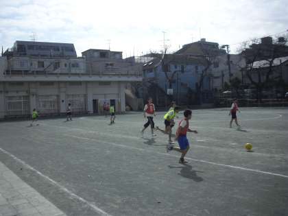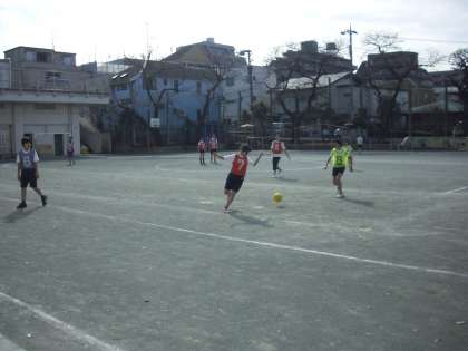 “体育科:サッカーゲーム”・・・どのチームも男女仲良く作戦をたてて・・・ゲームに臨んでいます。ピンチの時の“どんまい・・大丈夫・・・OK”等の声が・・・