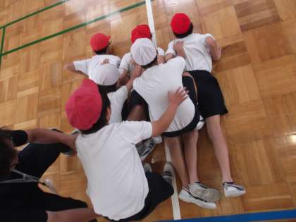 運動会まであと1週間。授業のない先生方が、6年生組体操練習に補助として入り安全面をより強化していきます。