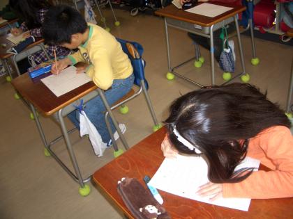 画面右 - 3年生は、「朝の漢字テスト」繰り返し行うことの大切さを子どもたちも理解して、予習をしっかりしてくる子どもたちもふえています。
