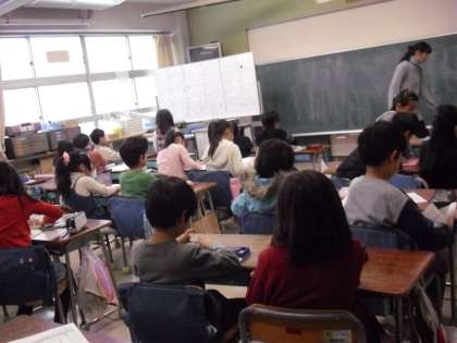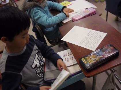 朝の会の前に配布物・・・宿題プリント・・・もうすぐ3年生・・・穏やかに先生の言うことを聞いています。