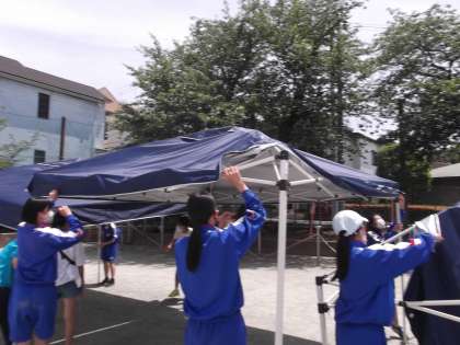そして、さぎそう学舎八幡中学校と本校卒業生の皆さんが、受付や出口門の開閉、用具、Zoom配信、児童管理など様々なお仕事をしてくれていました。そして、運動会が終わった後、テントの片付けや、パイプ椅子や長机の片付けなど最後までお仕事をしてくれました。