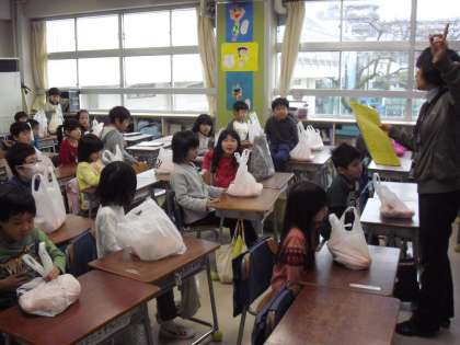 5年生がリーダーシップを発揮し、6年生に感謝の気持ちで“縦割り給食”の企画・運営を・・・そして、班の全員から感謝のコメントと各班の写真を張ったカードをプレゼントします。