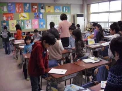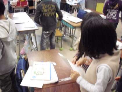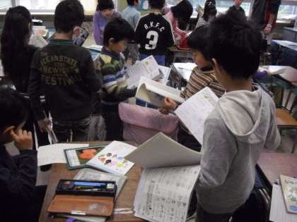 全校児童朝会後・・・教室に戻り・・配布物をみんなで行っていました。どの子も進んでお配りをしていました。
