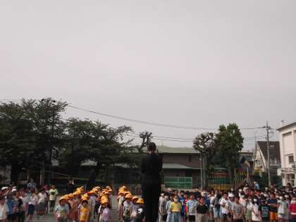 今朝の児童朝会では、教育実習生の先生のお別れの言葉がありました。
