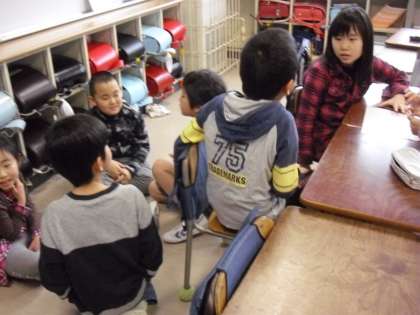 雨で“マラソン集会”がありません。朝の時間を利用して・・・“お楽しみ会の相談”