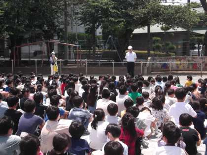 本日の避難訓練は、職員室から出火をした想定で行いました。