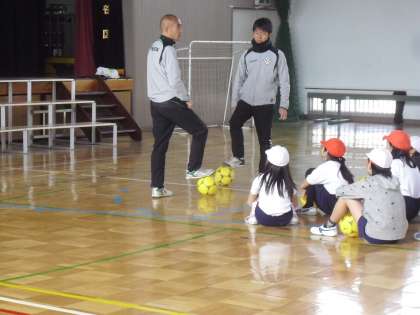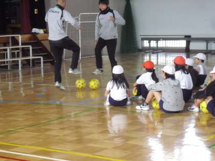 ゲストティチャーに東京ヴルディのコーチ2名を迎えて・・・鬼遊びで身体をほぐし・・