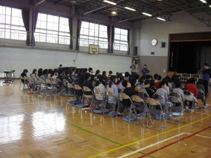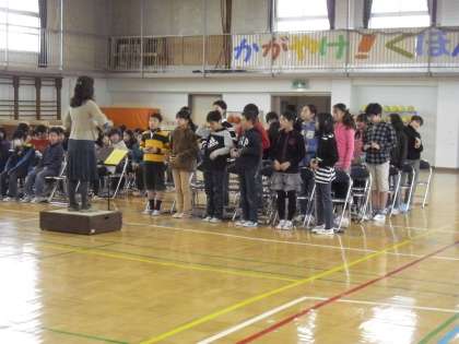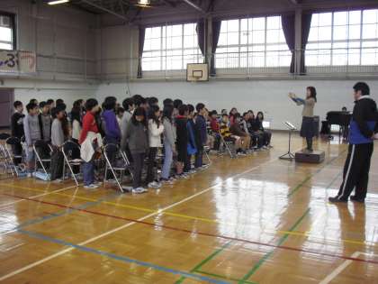 “専科授業:音楽・卒業式の練習・・・・♪少年の日はいま♪”