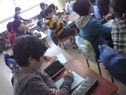 朝の会・・・先生の話・・・今日の予定・・卒業練習時の持ち物などについて・・・