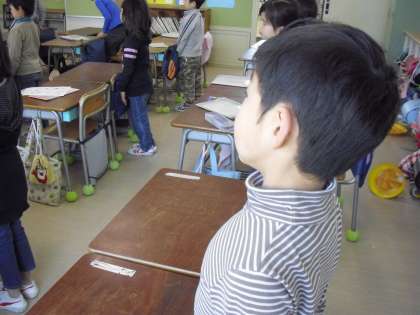 朝の音読が終わり・・・朝の会・・・・先生の話“今日は、水曜日時程・・・・”ということを確認していました。