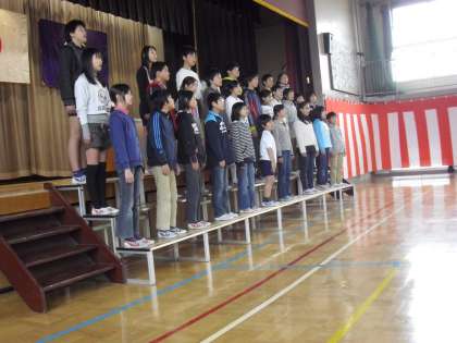 今日は、入場・・・・門出の言葉・・・歌・・・退場・・と6年生も送りだす4年、5年生も式の流れをよく理解し・・・立派な態度でした。