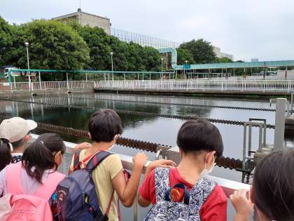 汚れていた水が第二沈殿池で、こんなにきれいな水になりました。