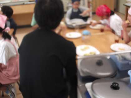 担任の先生に、子どもたちが作ったピザを沢山プレゼンとしました。
