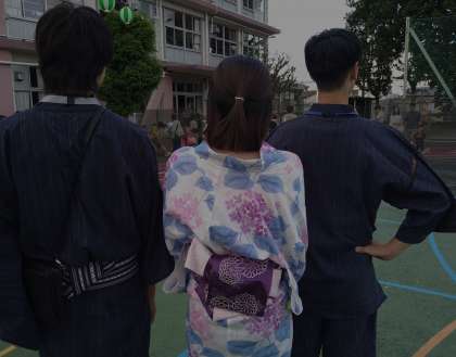 浴衣を着た先生方。いつもと違う雰囲気の先生方に、子どもたちは大興奮でした。