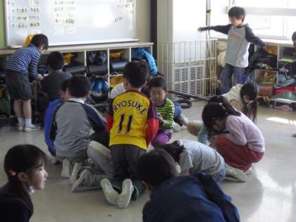 1年間のいろいろな思い出のある教室の大掃除です。先生の指示に・・きちんと掃除している子どもたちです。もうすぐ・・・2年生!