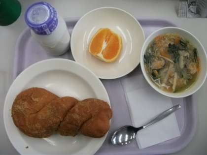 今日の給食は、あげパン・肉団子入り春雨スープ、清見オレンジ、牛乳です。