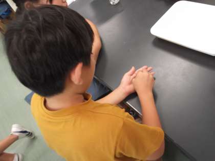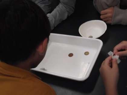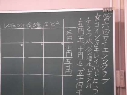 サイエンスクラブでは、どの液体で磨くときれいになるか実験を行いました。