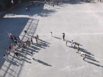 長縄タイムでは、縄に入るタイミングを練習しています。