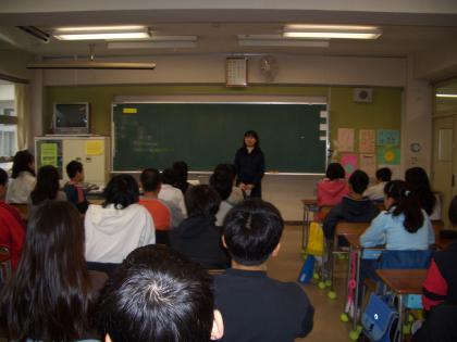 たちに“励ましのことば”を言っていました。算数少人数の先生は、明日から産休です。