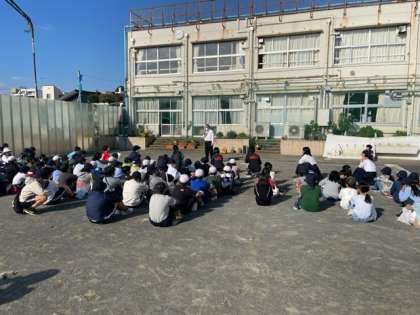 5年生は、八幡中学校に部活動体験に来ました。自分で選んだ部に参加して、中学校での部活動とはどういったものか、体験します。子供たちは興味津々といったところです。