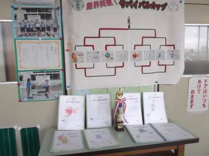教室前の廊下には、先日の体育科の授業で行ったポートボールの結果が貼られています。