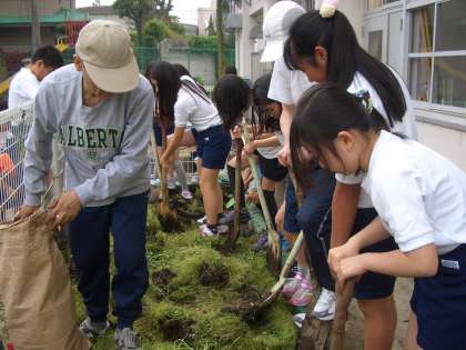 毎年、5年生がお米づくりに挑戦しています。今日は地域のボランティアの樋口さんが来てくださり学校の田んぼを耕しました。土に触れあう子どもたちの歓声が校長室まで聞こえてきます。