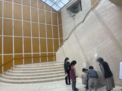 4年生は美術鑑賞教室で、世田谷美術館に来ています。たくさんの作品がありますが、ガイドさんがついてくれているので、子どもたちは興味をもってみることができています。