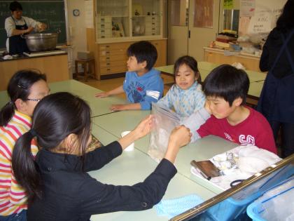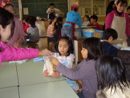 まず、“パン生地つくり”をしました。子どもたちも一緒に・・・。