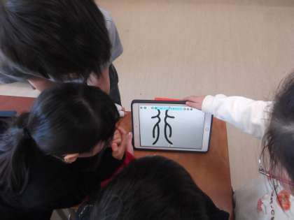 今日は、タブレットを使っての漢字クイズを行いました。