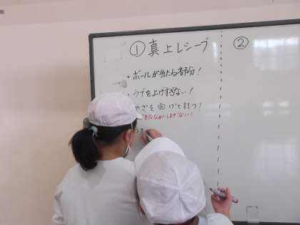 気付いたことをホワイトボードに記入して考えの共有をしています。