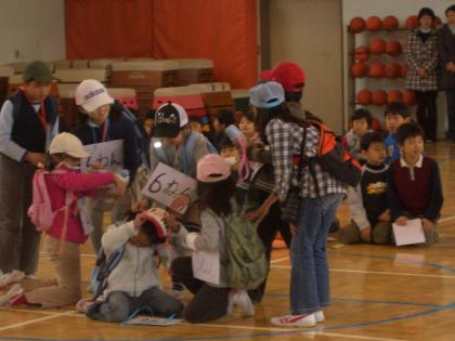 3年生は、“6年生との思い出の劇(縦割遠足・学芸会など6年生が活躍した場面)とエール”を送りました。