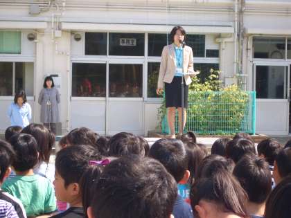 今日は、来週の月曜日の朝に見られる金環日食のお話をします。「日食」とは、月が太陽の前を横切るために、月によって太陽の一部(または全部)が隠されることです。太陽が月によって全部隠されるときには「皆既日食(または皆既食)」と呼ばれます。太陽のほうが月より大きく見えるために月のまわりから太陽がはみ出して見えるときには「金環日食(または金環食)」と呼ばれます。皆さんの暮らしている地球、そして、太陽や月をはじめとする多くの星は、決まった場所を決まった速さで動いています。みなさんが安全に楽しく生活できるように学校に決まりがあるように、宇宙にも決まりがあるのですね。その決まりを計算すると、来週の月曜日に日食があることがわかるのです。