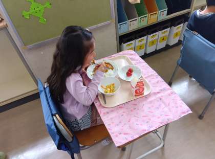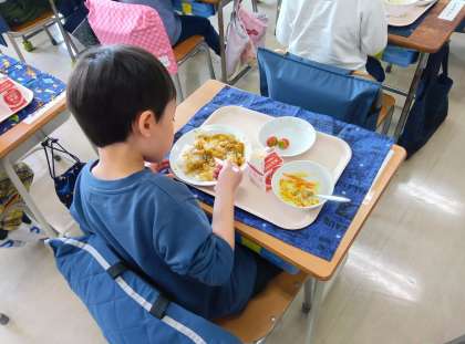 1年生になって初めての給食。献立はカレーライス!