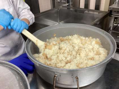 フレッシュな新たけのこを使ったたけのこごはんにしました。今が1番おいしい時期なので、おいしくいただきましょう。