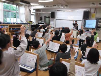 音楽科の授業では、鍵盤ハーモニカの研修を行っています。