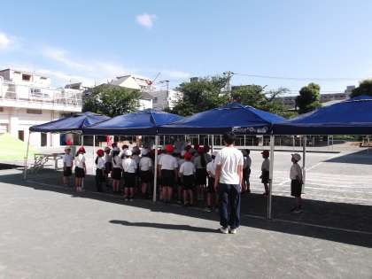 本日のお昼に保護者の皆様にご協力をいただき、テントを立てました。