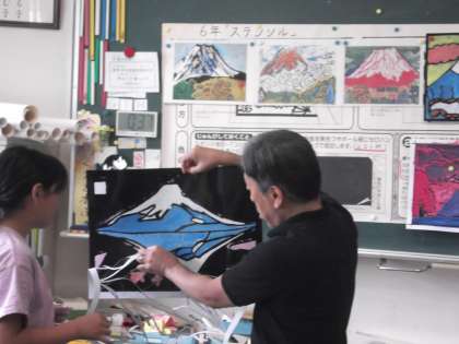 図画工作科の授業では、富士山を取り入れた作品を制作しています。